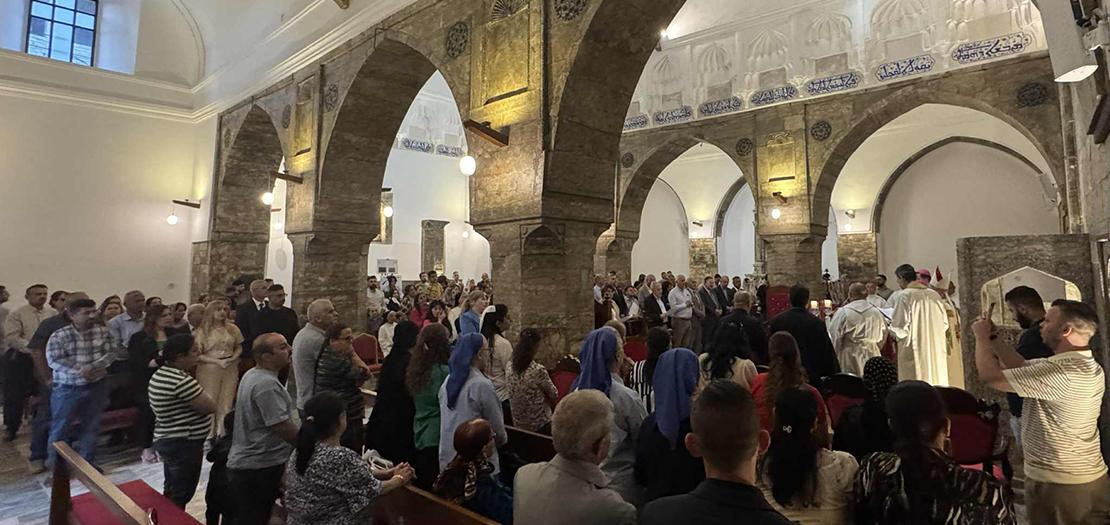 احتشد المئات من أبناء المدينة، ورجال الدين، والسياسيين المحليين، أمام حجارة الكنائس العتيقة التي استعادت أنفاسها من جديد. وكانت كنيسة مار توما قد استُخدمت كسجن من قِبل ما يُسمى بـ”تنظيم الدولة الإسلامية”، الذي ألحق أضرارًا فادحة بباب الرسل الاثني –المنحوت من الرخام المحلي في القرن الثالث عشر، قبل أن يُعاد ترميمه بجهود عراقية وفرنسية مشتركة.