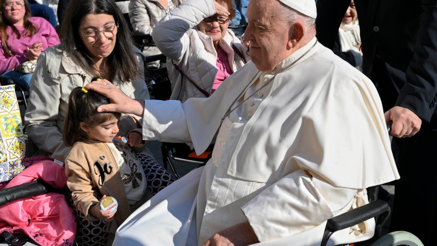 وقال البابا: فلتصمت الأسلحة، ولتُوفَّر فسحة للحوار، وأراد قداسته التذكير هنا بآلام الشعوب المعانية من الحرب، ثم أكد الصلاة من اجل المتضررين من السيول في فالنسيا الإسبانية داعيًا الجميع إلى أن يسألوا أنفسهم: هل أصلي من أجل هؤلاء الأشخاص وهل أقدم شيئا ما؟ ثم ختم البابا متمنيا للجميع أحدا سعيدا سائلا إياهم ألا ينسوا أن يُصلوا من أجله.