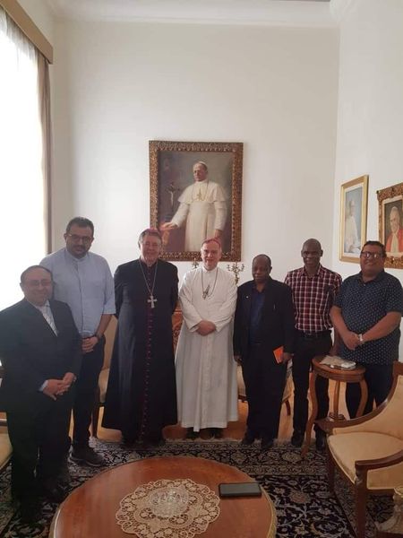استقبل سيادة المطران نيقولاس هنري، السفير البابوي بمصر، لجنة سيكام للعدالة والسلام، التابعة لمجلس الأساقفة الكاثوليك بإفريقيا، وذلك بمقر السفارة البابوية، بالزمالك.
