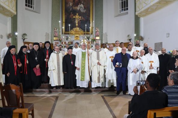 شارك في الصلاة والاحتفال سيادة المطران جورج شيحان رئيس أساقفة إيبارشية القاهرة المارونية لمصر والسودان، والزائر الرسولي على شمال إفريقيا، شارك أيضًا المونسنيور أنطوان توفيق نائب مطران الكنيسة اللاتينية بمصر، والأب مراد مجلع الخادم الإقليمي للرهبنة الفرنسيسكانية بمصر.