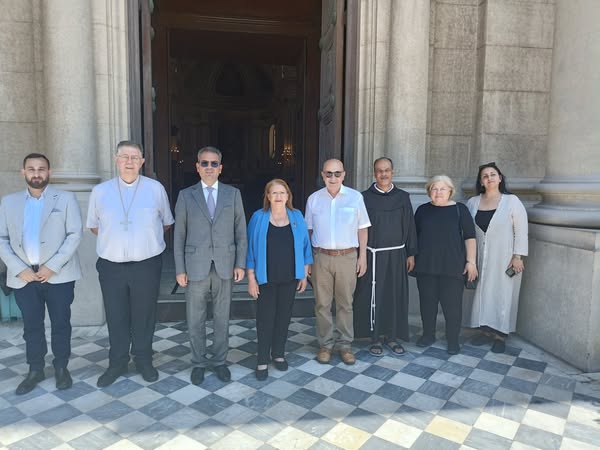 مطران الكنيسة اللاتينية بمصر يستقبل رئيسة جمهورية ملطا السابقة بكاتدرائية سانت كاترين بالإسكندرية