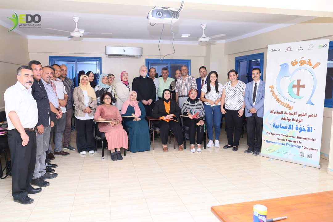 في مستهل اللقاء تحدث الأب متاوس اديب المدير العام لمكتب التنمية الإيبارشي عن وثيقة ” الأخوّة الإنسانية” الموقعة من فضيلة الأمام أحمد الطيب شيخ الأزهر الشريف وقداسة البابا فرنسيس بابا الكنيسة الكاثوليكية، بدولة الامارات العربية في 4 فبراير 2019 . وأكد الأب متاوس ان وثيقة الأخوّة الإنسانية ملهمة ببنودها الرصينة وكلماتها العميقة، لكل ذوي الإرادة الصاحة، الساعين إلى نشر قيم المحبة والسلام والإخاء بين الناس . واضاف مدير المؤسسة العريقة، إن مبادرة مكتب التنمية الإيبارشي تهدف إلى القاء الضوء من جديد على الوثيقة التاريخية، لإعادة اكتشاف الكنوز الغنية التي تحملها القيم الإنسانية المشتركة بين الأديان السماوية ودورها في حوار الحياة ومن ثم السعي الجاد نحو معايشة هذه القيم الراقية في مجتمعنا المحلي . وتمنى الأب متاوس أديب مدير المكتب ان تقود مبادرة ” اخوّة ” إلى افكار إبداعية تعمل على تصدير الفكر الراقي والمستنير من قلب الصعيد بأسيوط إلى العالم أجمع .