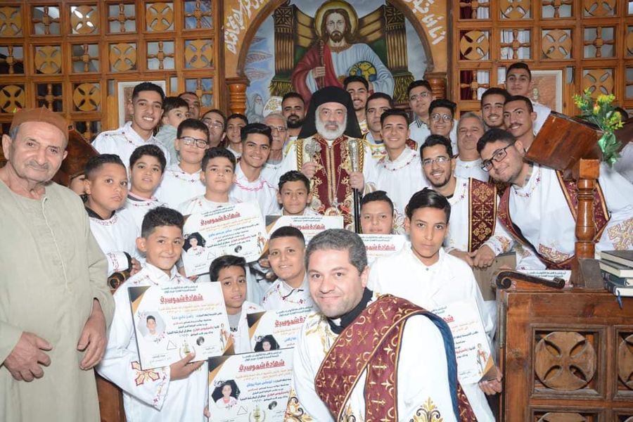 نيافة الأنبا باسيليوس يسيم شمامسة جدد بكنيسة السيدة العذراء بأبوان