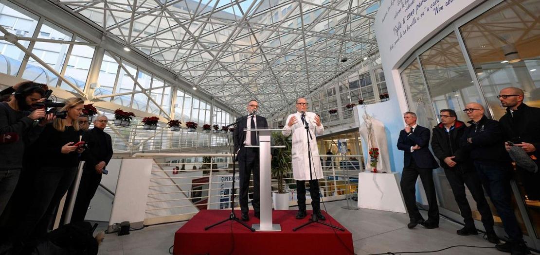 قال أعضاء الفريق الطبي للبابا فرنسيس: إنه ليس “في خطر الموت”، لكنه ليس “بعيدًا عن الخطر” تمامًا. وفي مؤتمر صحفي عقد في مستشفى جيميلي في روما، تحدّث الدكتور سيرجيو ألفيري، رئيس الفريق الطبي الذي يعتني بالبابا، والدكتور لويجي كاربوني، نائب مدير خدمة الرعاية الصحيّة في الفاتيكان، لمدة أربعين دقيقة أمام قاعة مليئة بالصحفيين.