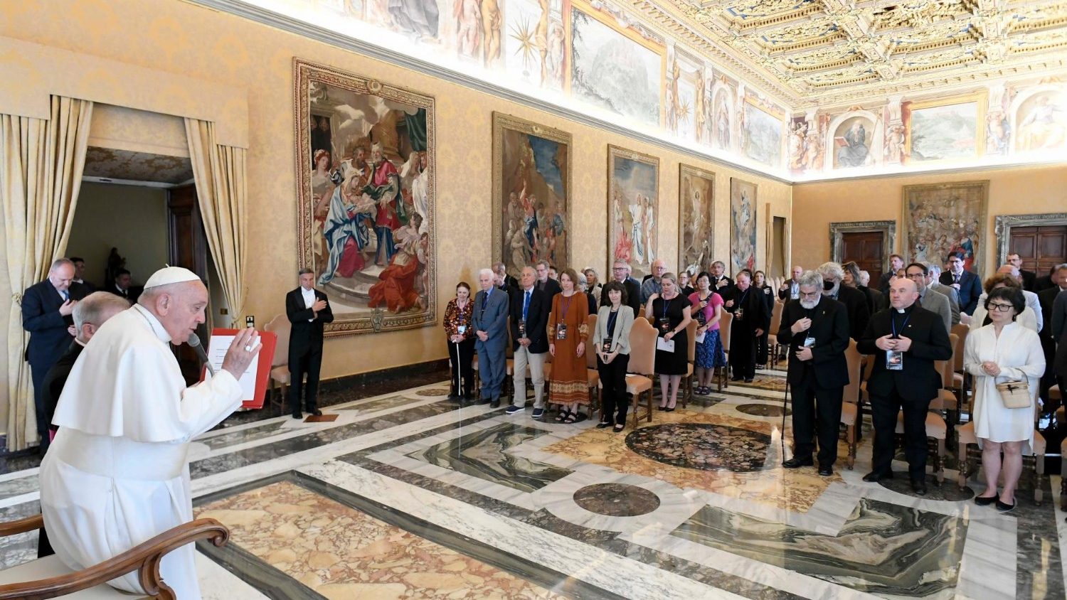 وخلص البابا فرنسيس إلى القول أيها الأصدقاء الأعزاء، أتمنى أن تستمروا في مناقشة القضايا التي تناقشونها بروح مخلصة ومتواضعة. إن الحرية غياب التكييف، اللذين تختبرونهما في هذا المؤتمر، يمكنهما أن يساعداكم على التقدم في مجالاتكم نحو الحقيقة، التي هي بالتأكيد انبثاق لمحبة الله. يمكننا أن نوحِّد الإيمان والعلم في المحبة، إذا وضِع العلم في خدمة رجال ونساء عصرنا، ولم يتمَّ تحويره وتشويهه لضررهم أو حتى تدميرهم. أشجعكم على الذهاب إلى ضواحي المعرفة البشرية: هنا يمكننا أن نختبر إله المحبة، الذي يروي عطش قلوبنا. أبارككم جميعًا وأبارك عملكم من كل قلبي. وأسألكم من فضلكم أن تصلّوا من أجلي.