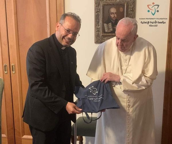 وقد عبر قداسة البابا فرنسيس عن امتنانه لفخامة الرئيس المصري لدعمه لمؤسسة الأخوة الإنسانية التي تعمل لخدمة المجتمع المصري الذي استقبل قداسته ضيفًا غاليًا سنة 2017، في إطار العَلاقة المميزة التي تربط دولة الفاتيكان وجمهورية مصر العربية، وأكد قداسته تشجيعه لكل المجهودات التي تحوّل مبدأ الأخوة الإنسانية إلى أعمال خير ملموسة تخدم جميع البشر، لا سيما الفقراء والمرضى والمحتاجين.