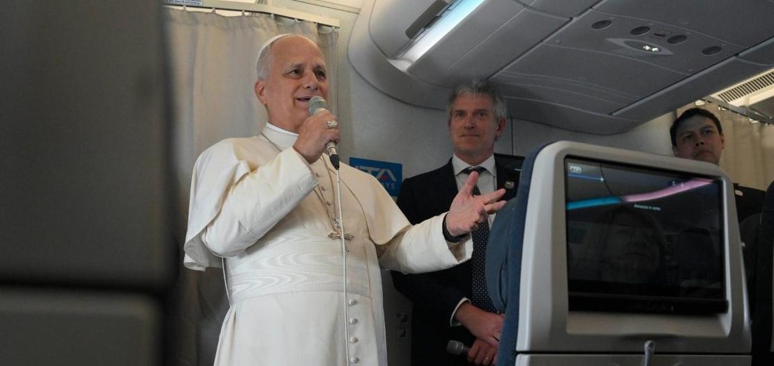 اختتم البابا لاوُن رحلته الرسولية في إفريقيا، وخلال عودته إلى روما على متن الطائرة، عقد لقاءً مع الصحفيين المرافقين، تناول فيه عددًا من القضايا الدولية والإنسانية، في مقدمتها الحرب في إيران، والهجرة، والعلاقات السياسية، إضافة إلى قضايا كنسية داخلية.