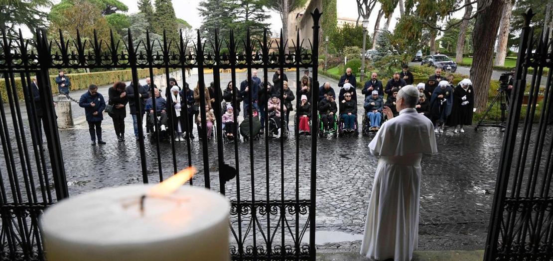 وشكر البابا الحاضرين على حضورهم وجهودهم للمشاركة في لحظة الصلاة أمام العذراء مريم، وقبل أن يمنحهم البركة الرسولية، رفع صلاة إلى الرب من أجل جميع المرضى، اليوم وفي كل حين، ومن أجل الأطباء والممرضين وكل من يرافقهم ويعتني بهم. (راديو الفاتيكان)