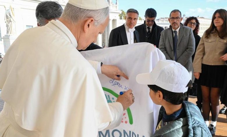 خلال المقابلة العامة، الأربعاء، بارك البابا لاوُن ووقّع على علم يحمل الشعار الرسمي لليوم العالمي للأطفال لعام 2026. وقال البابا، أثناء تحيته للحجاج الناطقين بالإيطالية: “أفكاري تتوجه إلى الأطفال، الذين سأكون سعيدًا بلقائهم في اليوم المُخصّص لهم، والمقرر عقده من 25 إلى 27 سبتمبر 2026”.