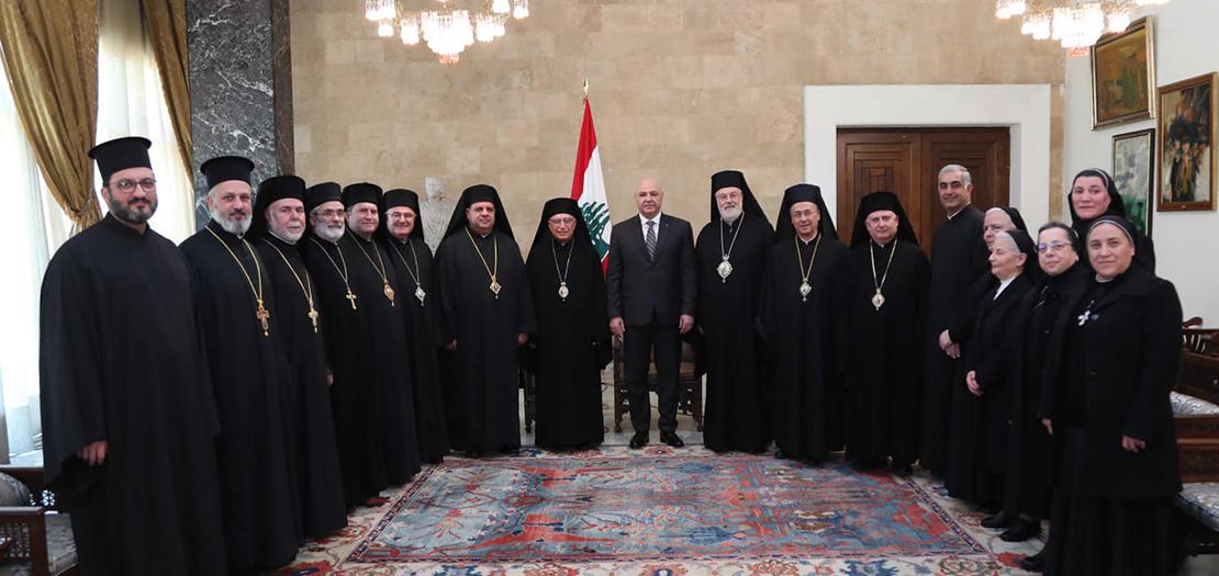 زار صاحب البطريرك يوسف العبسي بطريرك أنطاكية وسائر المشرق للروم الملكيين الكاثوليك رئيس الجمهورية اللبنانية العماد جوزاف عون، لتقديم التهنئة، على رأس وفد ضم أصحاب السيادة مطارنة الأبرشيات في لبنان والرؤساء والرئيسات العامين لرهبانيات الروم الملكيين الكاثوليك.