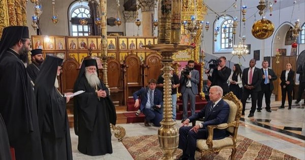 وفي سياق الاستقبالات الرسمية للرئيس بايدن شارك البطريرك ثيوفيلوس الثالث، بطريرك المدينة المقدسة، مع بقية البطاركة ورؤساء الكنائس في حفل استقبال أقامة بالأمس رئيس دولة اسرائيل، اسحاق هرتسوج، في مقر إقامته الرسمي على شرف الرئيس الأمريكي جوزيف بايدن.