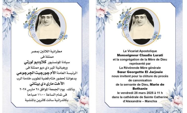 إغلاق المرحلة الأبرشية من دعوى تطويب وقداسة خادمة الله “ماري دي بيثاني”