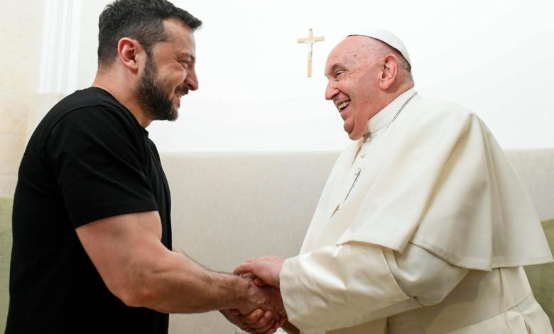 كانت أول زيارة لزيلينسكي إلى القصر الرسولي الفاتيكاني في ٨ فبراير ٢٠٢٠، عندما كانت تهديدات جائحة فيروس الكورونا قد بدأت بالظهور في أوروبا، بينما كانت الحرب تبدو كخطر مقتصر على منطقة شرق أوكرانيا. منذ أول قصف روسي على كييف، كانت هناك اتصالات متواصلة مع البابا عبر رسائل ومكالمات هاتفية، أحدها تمّت في ٢٨ ديسمبر ٢٠٢٣ لتبادل التهاني بعيد الميلاد وتكرار التمنيات بـ “سلام عادل للجميع”. وبعد مرور عام ونصف على اندلاع الصراع، لم يعد زيلينسكي منعزلًا كما كان في الأشهر الأولى، وعاد للسفر، وفي شهر أيار مايو من العام الماضي قام بجولة شملت عدة عواصم أوروبية، بما في ذلك روما ودولة حاضرة الفاتيكان. وفي هذا العام، في شهر يونيو، شارك الرئيس الأوكراني في قمة مجموعة السبع في بورغو إينيازيا في بوليا، حيث عقد في تلك المناسبة لقاء ثنائيًا خاصًا مع البابا.