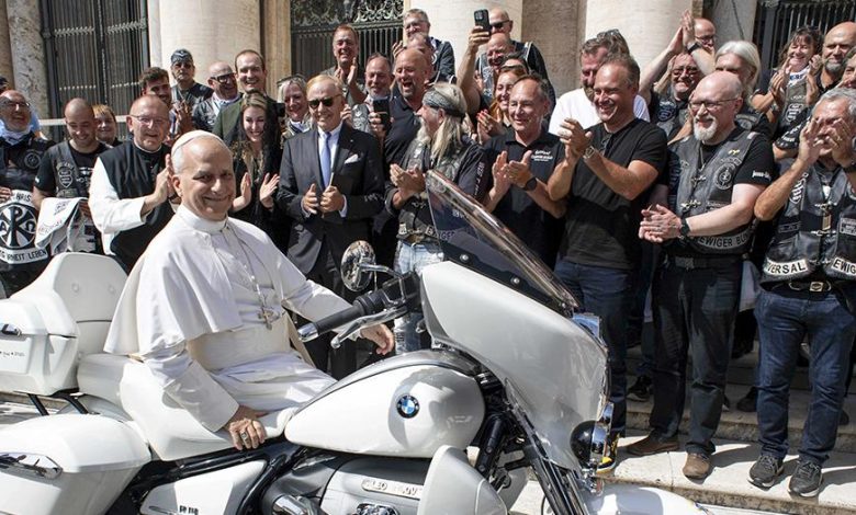 وتلقى البابا منهم دراجة نارية من طراز BMW R 18، ووقّع عليها، ثم صعد قليلاً إلى المقعد وسط تصفيق الحضور. لكن الدراجة لن تبقى في مرآب الفاتيكان، إذ سيتم عرضها في مزاد علني في ميونيخ يوم 18 أكتوبر، على أن تذهب العائدات لدعم الأطفال العاملين في مناجم الميكا في مدغشقر ومنحهم فرصة الالتحاق بالمدارس، عبر مؤسسة Missio Austria.