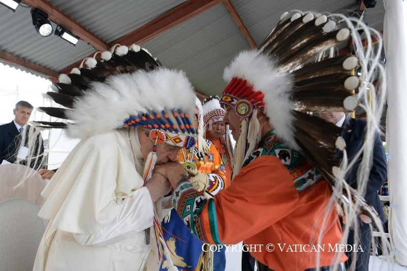وقال البابا فرنسيس: أصلّي وآمل أن ينمو المسيحيّون والمجتمع في هذه الأرض في مقدرتهم على التّرحيب بهوية وخبرة الشّعوب الأصليّة واحترامها. وسأستمرّ في تشجيع التزام جميع الكاثوليك تجاه الشّعوب الأصليّة. لقد فعلت ذلك في عدة مناسبات وفي أماكن مختلفة، في اللقاءات والنداءات وأيضًا في إرشاد رسوليّ خاص. أعلَم أنّ كلّ هذا يتطلّب وقتًا وصبرًا: فهذه عمليّات يجب أن تدخل في القلوب، ووجودي هنا والتزام الأساقفة الكنديّين هما شهادة على إرادتنا للمضيّ قُدُمًا في هذه الطريق.