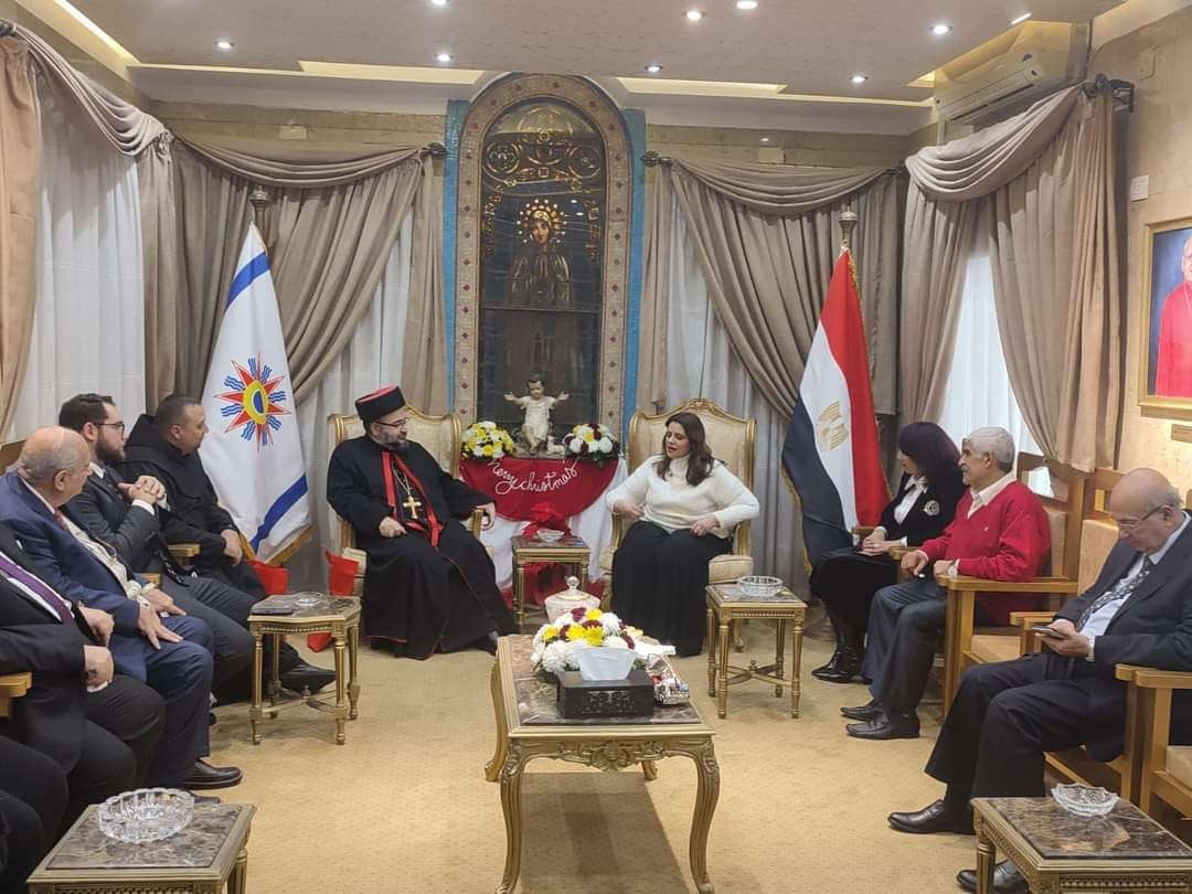 وبهذه المناسبة، أهدى سيادة الخورأسقف، نسخة من مخطوطة كلدانية تعود للقرن الثالث عشر الميلادي، إلى وزيرة الهجرة وشؤون المصريين في الخارج.