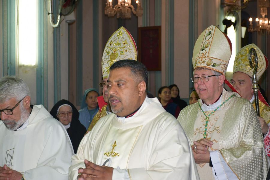 شارك في الصلاة والاحتفال سيادة المطران كريكور أوغسطينوس كوسا، أسقف الإسكندرية للأرمن الكاثوليك، وسيادة المطران كلاوديو لوراتي، مطران الكنيسة اللاتينية بمصر، والقمص أنطونيوس غطاس، وكيل عام بطريركية الأقباط الكاثوليك، والأب بطرس جوزيف، راعي الكاتدرائية، والمونسنيور أنطوان توفيق نائب مطران الكنيسة اللاتينية بمصر.