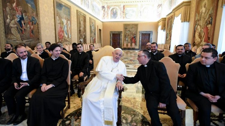 استقبل قداسة البابا فرنسيس أساتذة وطلاب معهد الليتورجيا في جامعة القديس باسيانوس في برشلونة. وبدأ الأب الأقدس كلمته إلى ضيوفه مرحبا بالجميع كما وأعرب عن سعادته للقائهم في السنة التي أراد أن تكون مخصَّصة للصلاة. وشدد البابا للأساتذة والطلاب على أهمية أن يتأملوا خلال دراساتهم في ضرورة السعي إلى هذه الوحدة مع الرب، وأيضا حول الوسائل التي وهبنا إياها الله من خلال الكنيسة من أجل بلوغ هذه الوحدة.