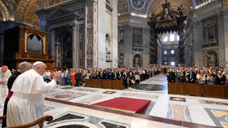 كما وتوقف الأب الأقدس في كلمته عند الذكرى الستين للرسالة العامة “السلام على الأرض”، وأشار إلى أن القديس يوحنا الثالث والعشرون يشدد فيها على قيمة السلام الذي يرتكز إلى العدالة والمحبة والحقيقة والحرية، واحترام كرامة الأشخاص والشعوب. وأضاف أن هذه القيم قد تعلّمها قبل كل شيء في قرى برغامو، وينطبق الأمر نفسه على القديس بولس السادس في بريشا. وأشار البابا فرنسيس من ثم إلى اختيار برغامو وبريشا “العاصمة الإيطالية للثقافة” لعام ٢٠٢٣، وأضاف يقول إن الثقافة هي مُحبّة للحقيقة والخير، وللإنسان والمجتمع والخليقة. وأمل أن يواصلوا تنميتها، قبل كل شيء في بيوتهم ورعاياهم، ذلك من أجل المضي قدما بالرسالة التي أوكلاها إلينا القديسان يوحنا الثالث والعشرون وبولس السادس.