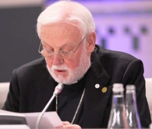 قال أمين سر الدولة للعلاقات مع الدول والمنظمات الدولية، المونسنيور پاول ريتشارد جالاجر إن علينا أن نفكّر فيما لا يمكن تصوره من أجل إحلال السلام في أوكرانيا، وذلك في حديثه خلال مؤتمر: “أسلحة الدبلوماسية. حوار بين الكرسي الرسولي وأوروبا إزاء الحرب”، الذي نظّمته في روما شبكة رؤساء اليونسكو الإيطالية (ReCui)، وشارك فيه أيضًا الرئيس السابق للمفوضية الأوروبية رومانو برودي.