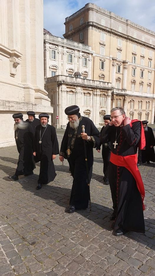 وأعرب قداسة البابا في بداية اللقاء عن سعادته بهذا اللقاء مشيرًا إلى زيارته للفاتيكان في مايو الماضي، بمناسبة مرور خمسين سنة على العلاقات بين الكنيستين القبطية والكاثوليكية، وأنه التقى قداسة البابا فرنسيس الذي تربطه بقداسته علاقة قوية.