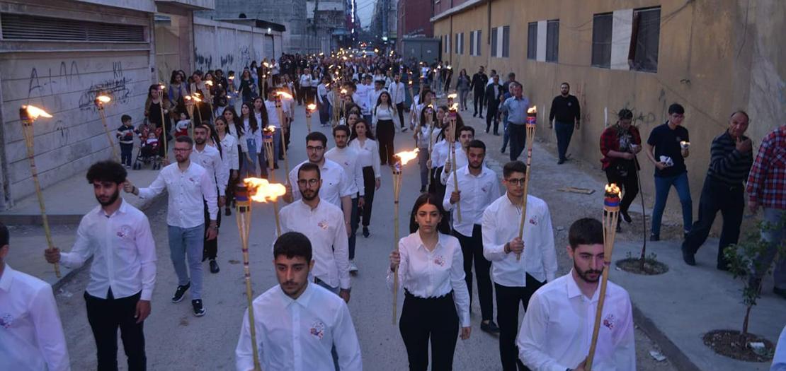 وفي مساء الأحد انطلقت مسيرة شموع جابت شوارع المدينة انطلاقًا من أمام مطرانية الأرمن الأرثوذكس حيث تقدم المسيرة الأرشمندريت ليفون يغيايان راعي أبرشية الأرمن الأرثوذكس في الجزيرة، والأب بساك بربريان، وعدد من أعضاء المجالس الملية الأرمنية. وعلى أنغام الألحان الأرمنية حمل أبناء مدينة القاملشي الشموع تخليدًا لذكرى الشهداء الأبرار واختتمت المسيرة باحتفال مركزي في صالة كولبنكيان. (المصدر ابونا)