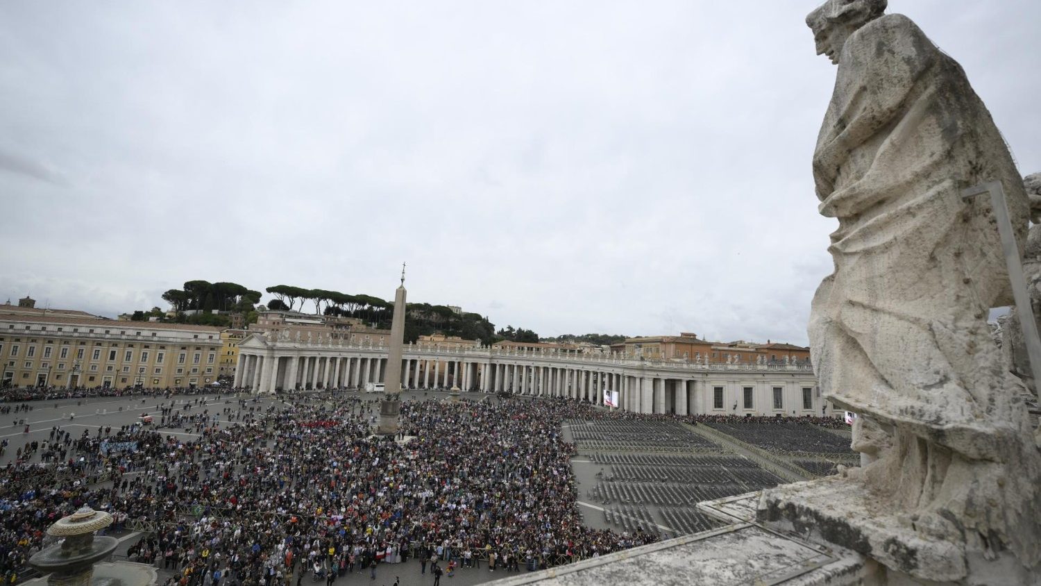 وبالتالي ستتحول ساحة القديس بطرس إلى منطقة جريتشيو مثالية، حيث ستوضع حول المذود والثور والحمار بعض الشخصيات: تلك التي حققت رغبة فقير أسيزي، مثل النبيل جيوفاني فيليتا وزوجته ألتيكاما، وثلاثة رهبان رفاق القديس فرنسيس وبعض الرعاة. ستعود بنا الذاكرة إلى ما رواه توماسو دا شيلانو، الذي وصف أول مغارة حيّة في التاريخ. إذ تم اختيار تصوّر ما حدث في ذلك الوقت من خلال تمثيل فني، يظهر المشهد في الوسط اللوحة الجدارية لمغارة جريتشيو التي يحتفل أمامها أحد الرهبان الأصاغر بالقداس الإلهي بحضور القديس فرنسيس الذي يحمل الطفل بين ذراعيه والعذراء مريم، إلى جانب القديس يوسف والثور والحمار.