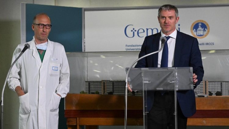هذا وعرَّف بالحالة الصحية للبابا الدكتور البروفيسور سيرجو ألفييري الذي أجرى العملية الجراحية يعاونه فريق من الأطباء، والذي ذكر أنه قد أُجريت عملية جراحية مخطَّط لها بسبب فتق ناتج عن تدخلات جراحية في بطن الأب الأقدس تعود إلى سنوات مضت، وأضاف أن آثار تلك العمليات الجراحية السابقة تُسبب للبابا فرنسيس منذ أشهر ظاهرة انسدادات جزئية مؤلمة في الأمعاء.