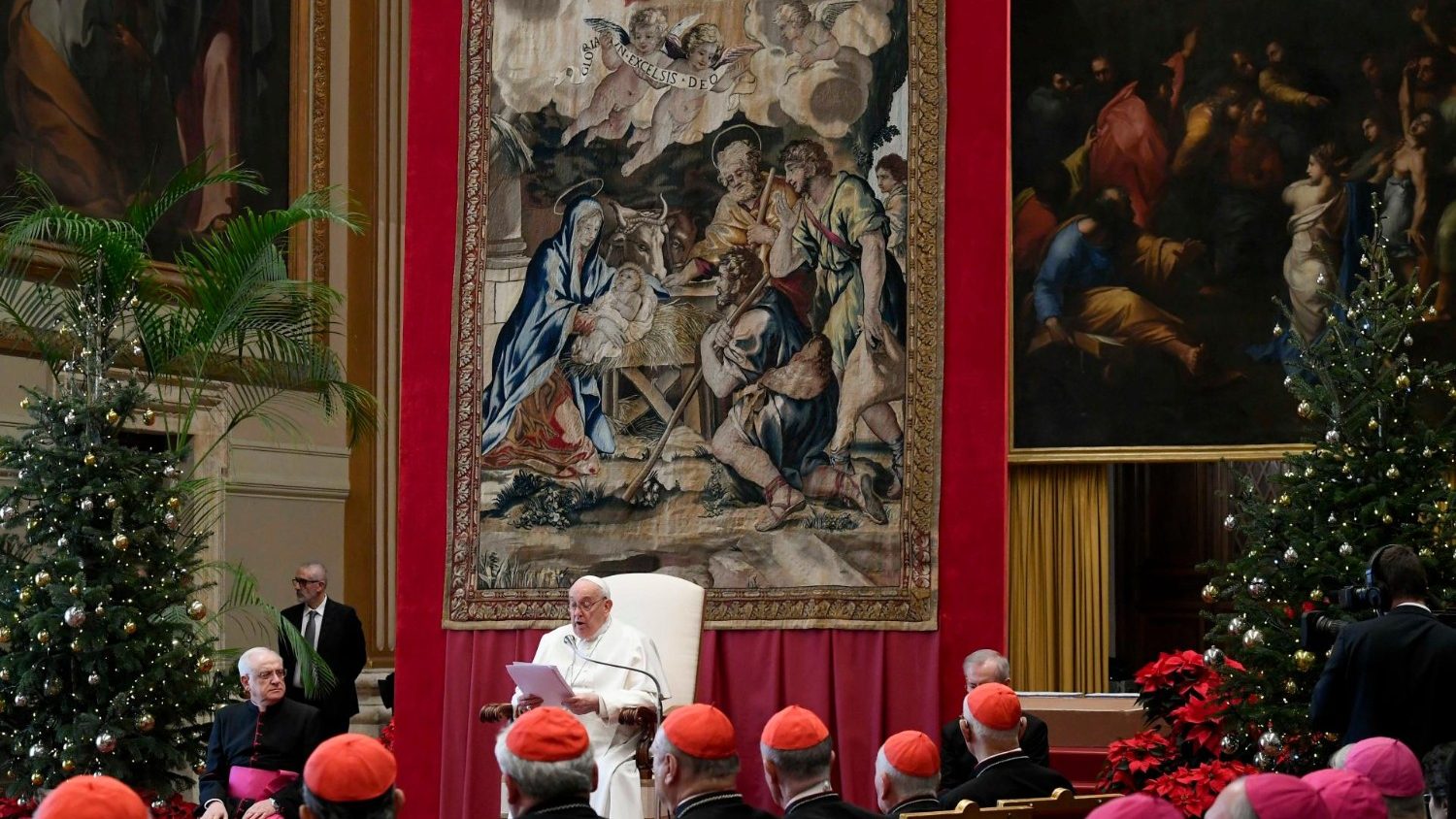 استقبل البابا فرنسيس أعضاء الكوريا الرومانية لتبادل التهاني بحلول عيد الميلاد كما جرت العادة سنوياً، ووجه للحاضرين كلمة قال فيها إنَّ سرّ عيد الميلاد يوقظ قلوبنا على دهشة إعلان غير متوقّع: الله يأتي، الله هنا في وسطنا وقد بدّد نوره ظلمات العالم إلى الأبد. نحن بحاجة لأن نصغي دائمًا لهذا الإعلان ونناله، لاسيما في زمن لا يزال مطبوعًا للأسف بعنف الحرب، ومخاطر تاريخيّة نحن معرّضون لها بسبب تغيّر المناخ، والفقر والآلام والجوع وغيرها من الجراح التي تملأ تاريخنا. من المعزّي أن نكتشف أنه حتى في “أماكن” الألم هذه، كما في جميع فسحات بشريّتنا الهشة، يحضر الله في هذا المهد، المذود الذي اختاره اليوم لكي يولد فيه ويحمل محبة الآب للجميع؛ وهو يقوم بذلك بأسلوب الله: القرب والشفقة والحنان.