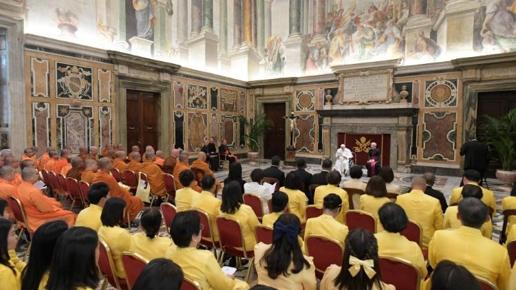 استقبل البابا فرنسيس في الفاتيكان وفداً بوذياً من تايلاند، يتألف من ثلاثة وثلاثين راهباً ينتمون إلى مدرستي Theravada و Mahayana، بالإضافة إلى ستين بوذياً علمانياً وعدد من الممثلين عن الكنيسة الكاثوليكية في البلد الآسيوي.