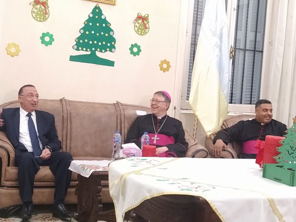 استقبل، سيادة المطران كلاوديو لوراتي، مطران الكنيسة اللاتينية بمصر، سيادة الوزير اللواء محمد الشريف، محافظ الإسكندرية، والوفد المرافق له، وذلك بمقر المطرانية، لتقديم التهنئة بعيد الميلاد المجيد.