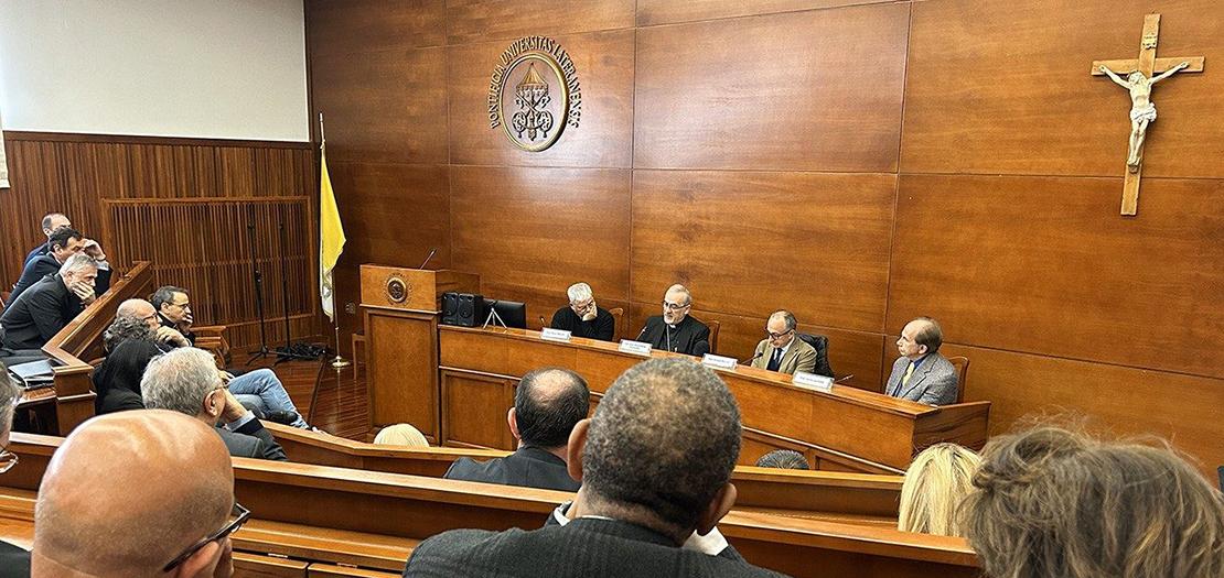 جاءت محاضرة بطريرك القدس إثر تسلمه الرئاسة الفخرية لكنيسة القديس أونوفريو في روما، وكانت ضمن فعاليات دورة دراسية متخصصة في علوم السلام والتعاون الدولي بمعهد الرعاية الرعوية ريديمبتور هومينيس.